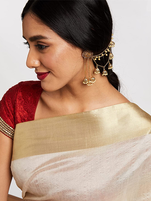 The blouse worn by the model might be for modelling purpose only. Check the image of the blouse piece to understand how the actual blouse piece looks like.