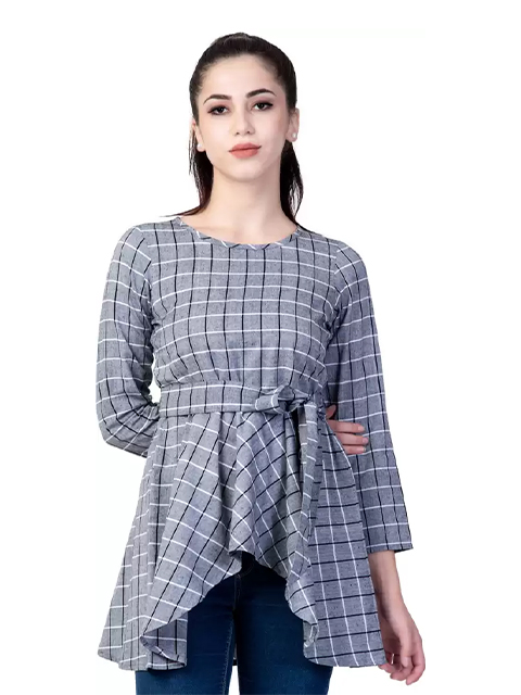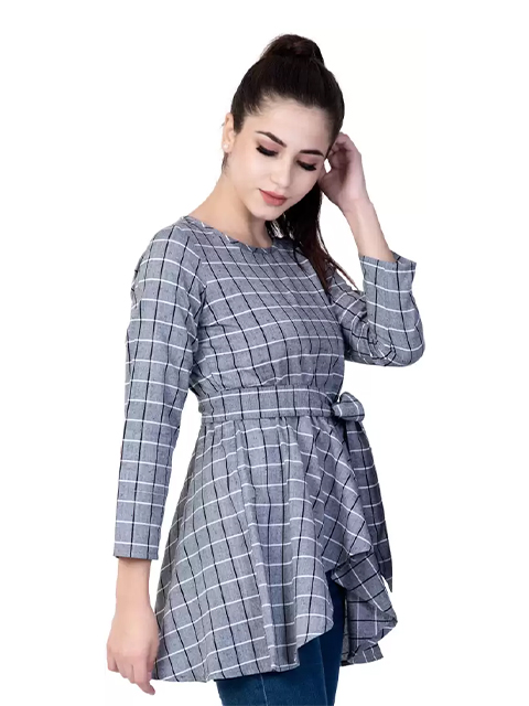 Casual Regular Sleeves Checkered Women White, Black, Grey Top