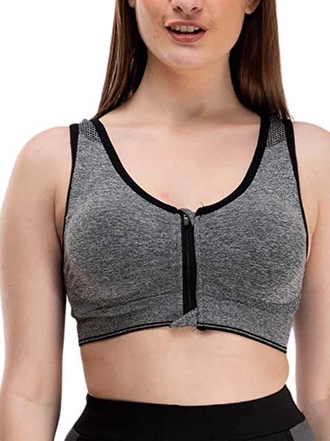 Women's Front Zipper Lightly Padded Non-Wired Sports Bra with Removable Pads