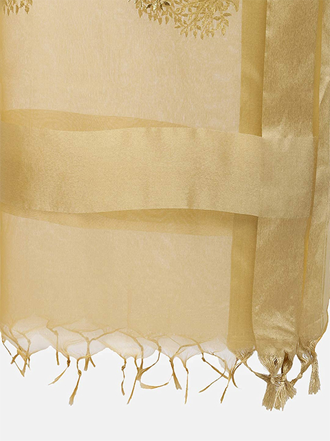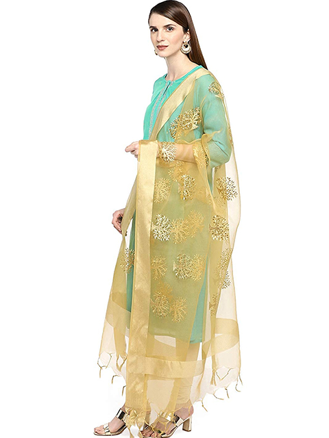This organza dupatta is adorned with beautiful golden tree motifs all over.A perfect gift for women and girls for all occasions.