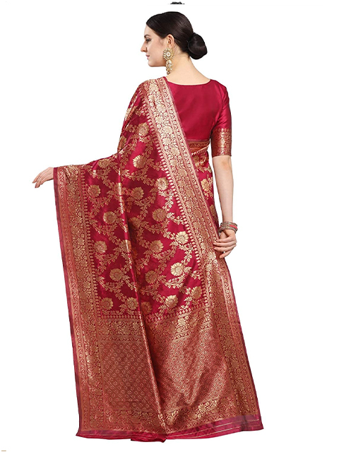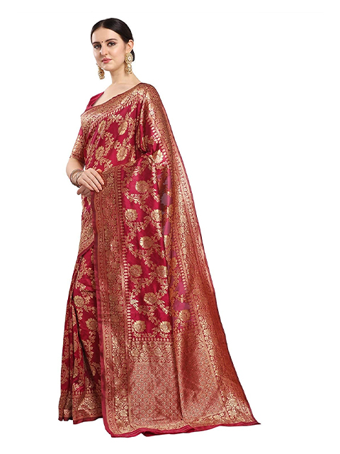 Floral Woven Banarasi Silk Saree with Blouse Piece