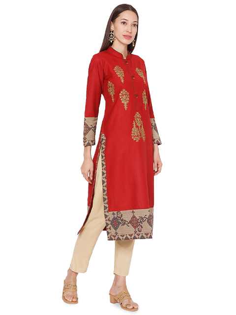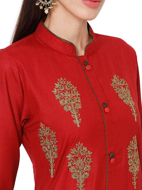 Make your ethnic wear collection stand out with this set. An elegant hue makes it a must-have. Complete your look with heels and dainty accessories.