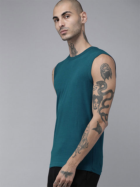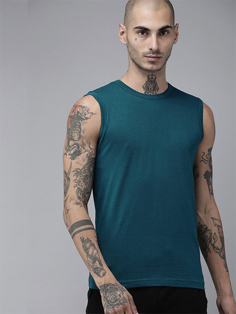 Men Blue Solid Innerwear Vest