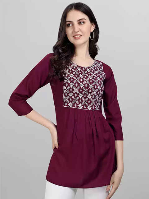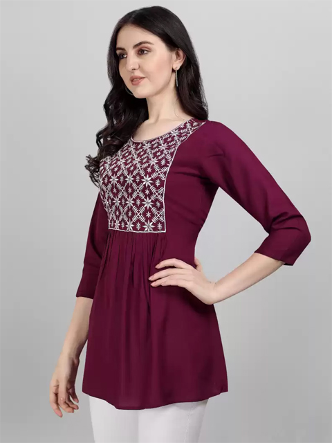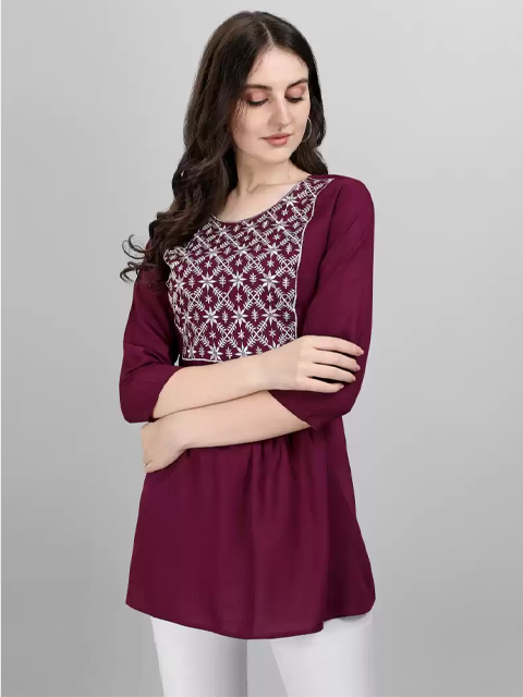 Stylish Look Can Be Effortlessly Achieved By Wearing This Tunic. Double your fashion flair as you wear this Beautiful Tunic .It is a Rayon fabric Tunic which makes it an apt choice for all season.it assures a soft and smoothing touch against the skin.