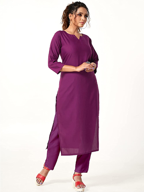 Pure Plain Kurta Set for Women - Cotton Rayon Blend