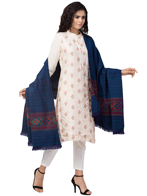 Transform in an instant into an icon of elegance with this woven acro woolen shawl from Safaa. Style it with right accessories for that complete ethnic look.