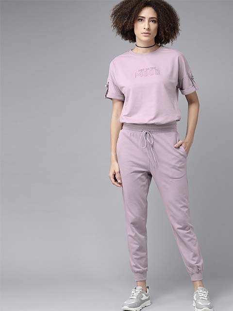 Women Elegant Mauve Solid Leisure Set Co-Ords