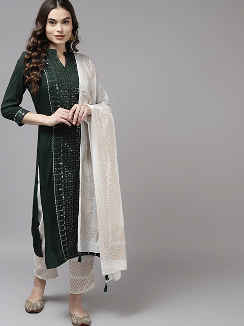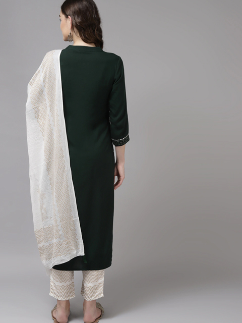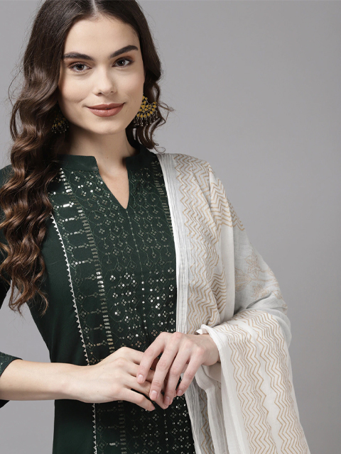 Women Green Ethnic Motifs Embroidered Regular Kurta with Palazzos & With Dupatta