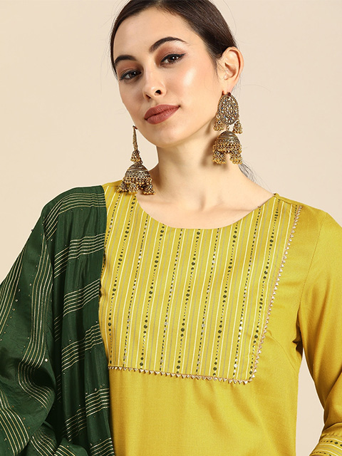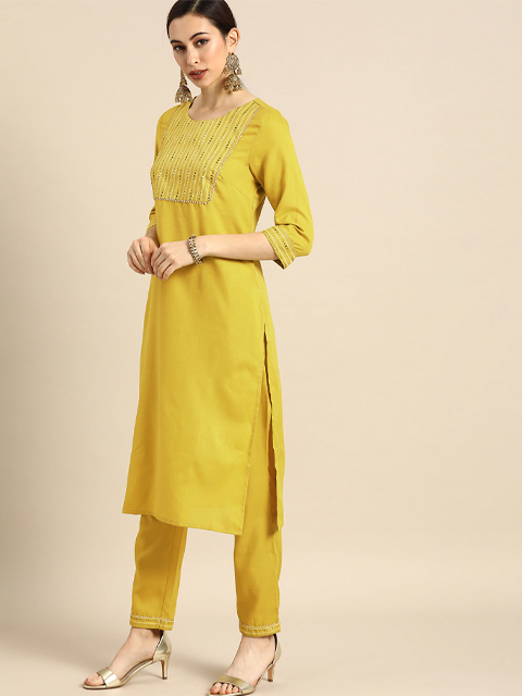 A mustard kurta set is a comfortable treat for boosting your confidence. Accessorize this kurta set with gold.