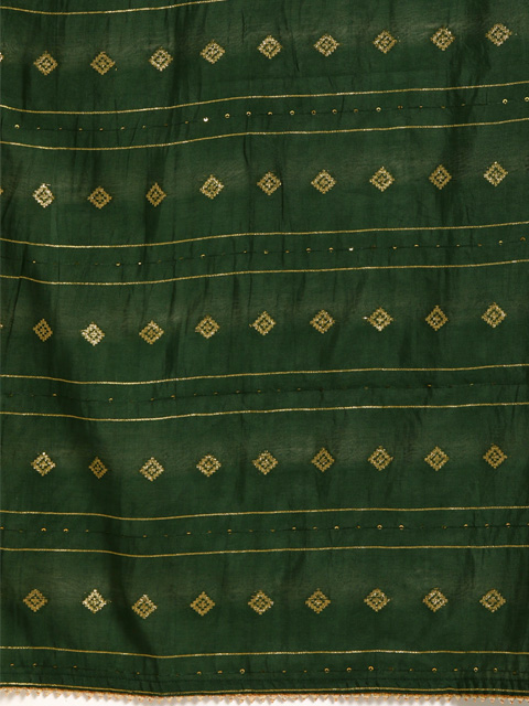 Women Mustard Yellow Yoke Design Foil Printed Kurta with Trousers & Dupatta