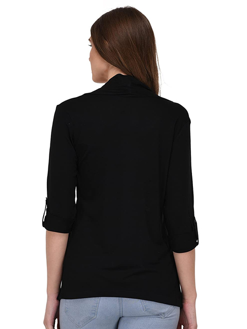 Black Solid Open Front Shrug for Women