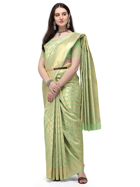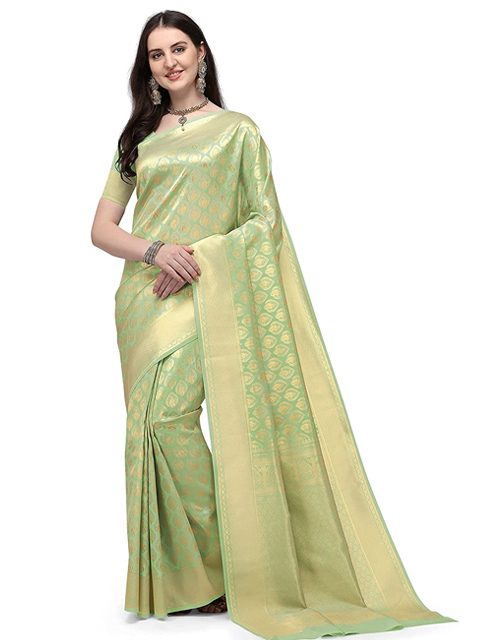 Women's Banarasi Silk Sarees With Zari Jacquard Work & Blouse Piece 1