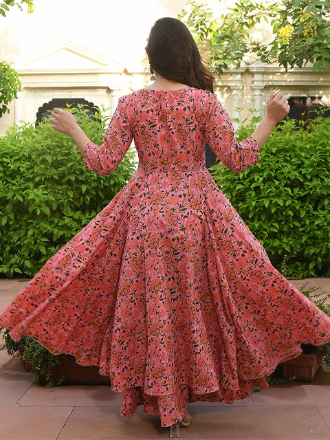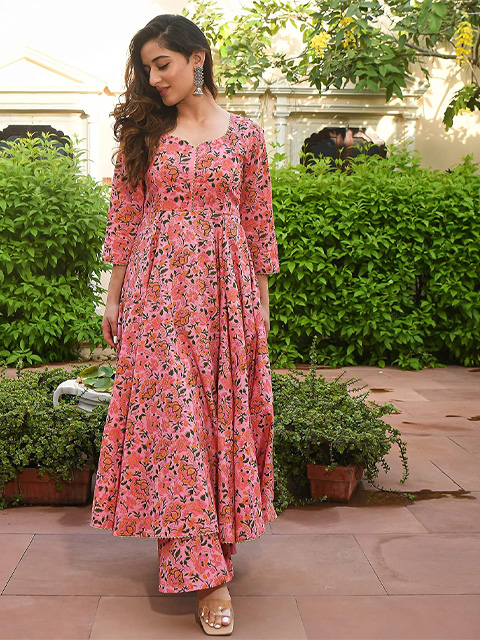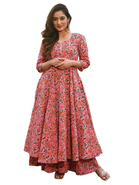 Women's Cotton Printed Anarkali Kurti with Palazzo Pants Set, Floral
