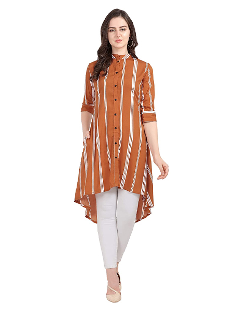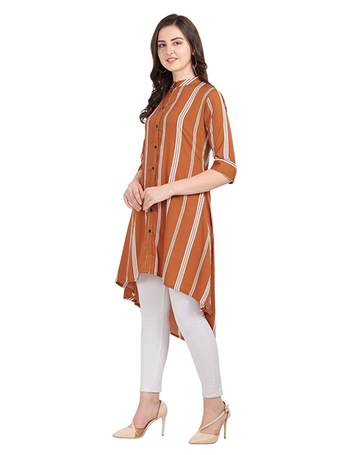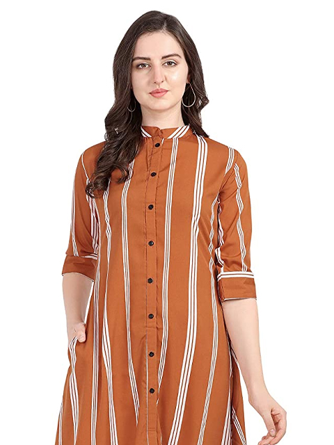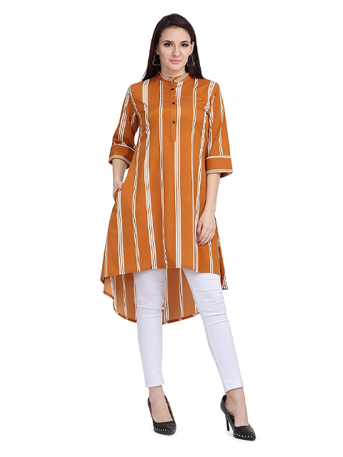 Serein Crepe Orange Striped Up-Down Tunic Dress with side Pocket. Pocket in this tunic Dress gives Unique touch; This dress can be worn casually; you Can worn on Jeans, Ankle pents and Heels etc..