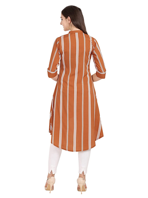 Serein Women Orange Striped Crepe Single Kurti & Tunic