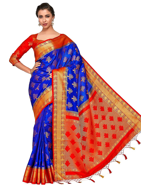 The saree comes with an unstitched blouse piece. The blouse worn by the model might be for modelling purpose only.