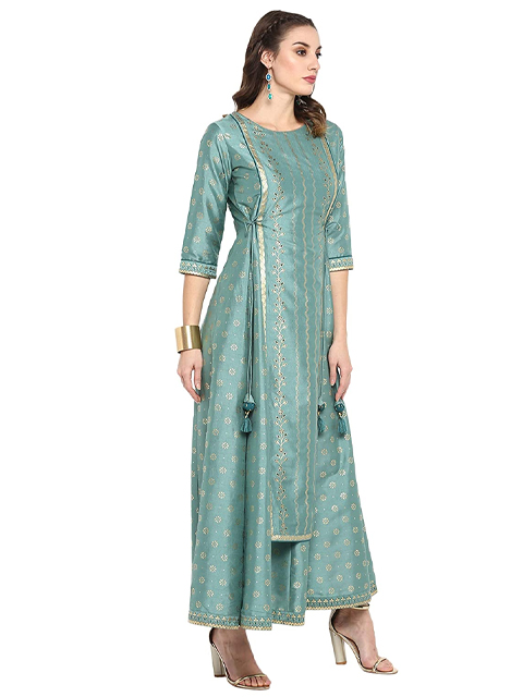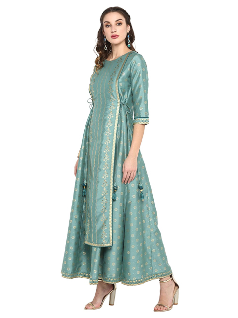 • Style: Anarkali style 52" length Ethnic Dress with 3/4 Sleeve