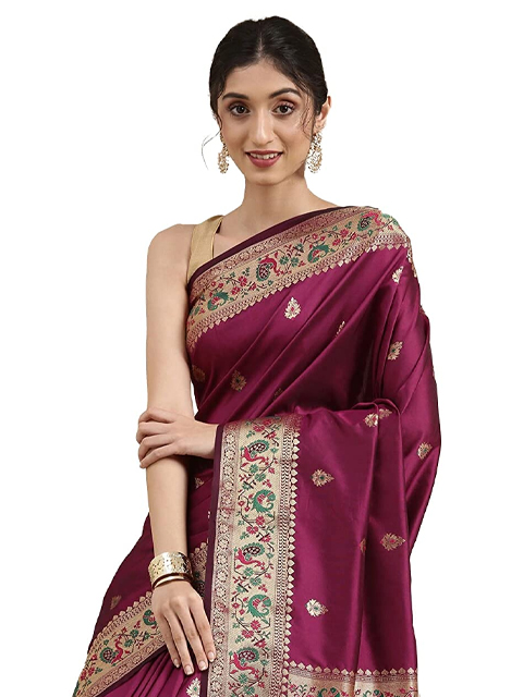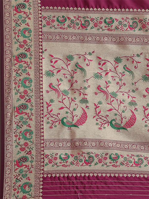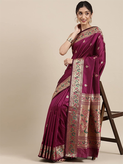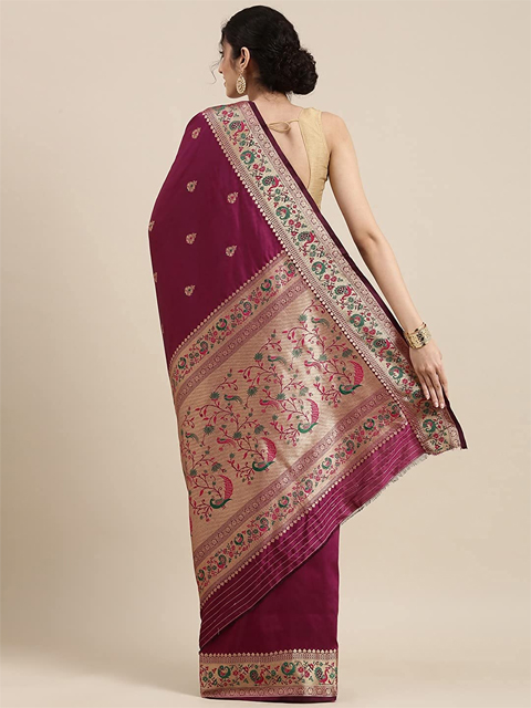 Women's Paithani Silk Saree With Unstitched Blouse Piece 1