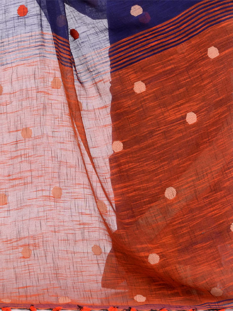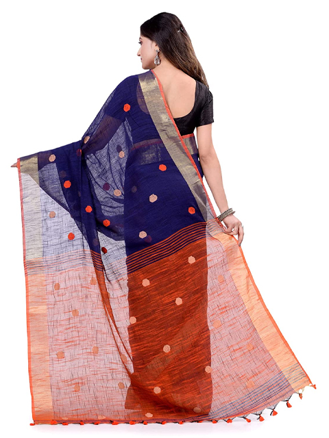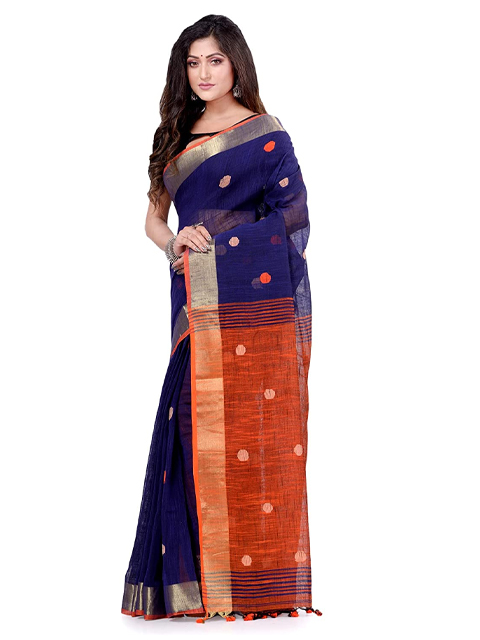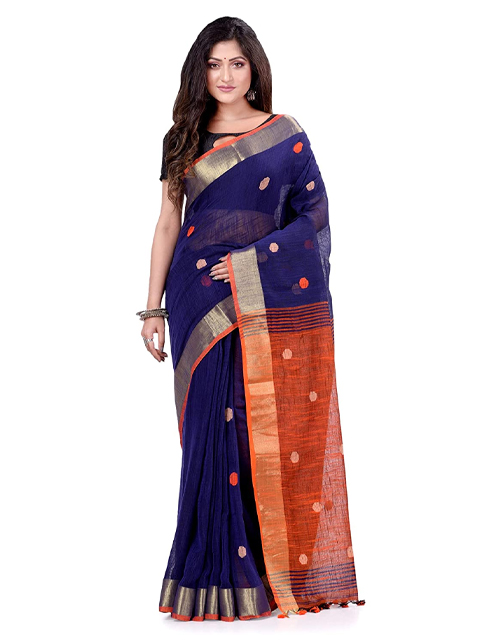 Womens Pure Cotton Traditional Bengali Tant Handloom Cotton Saree Round Desigined With Blouse Piece