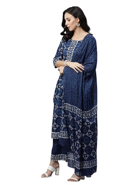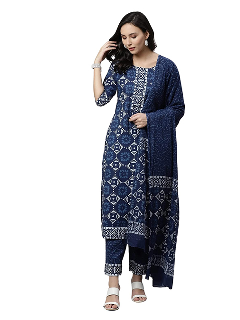 Women's Rayon Printed Straight Kurti with Dupatta Set