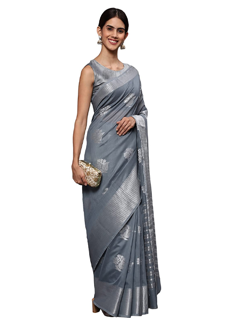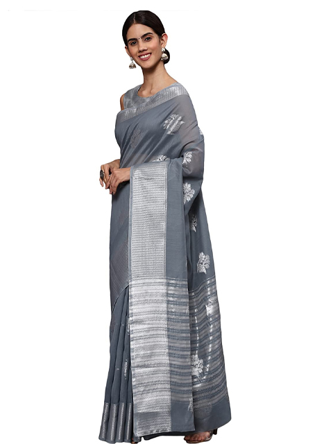 Women's Tissue Silk Silver Saree With Blouse Piece